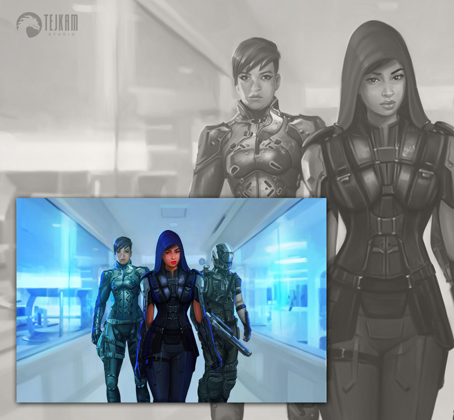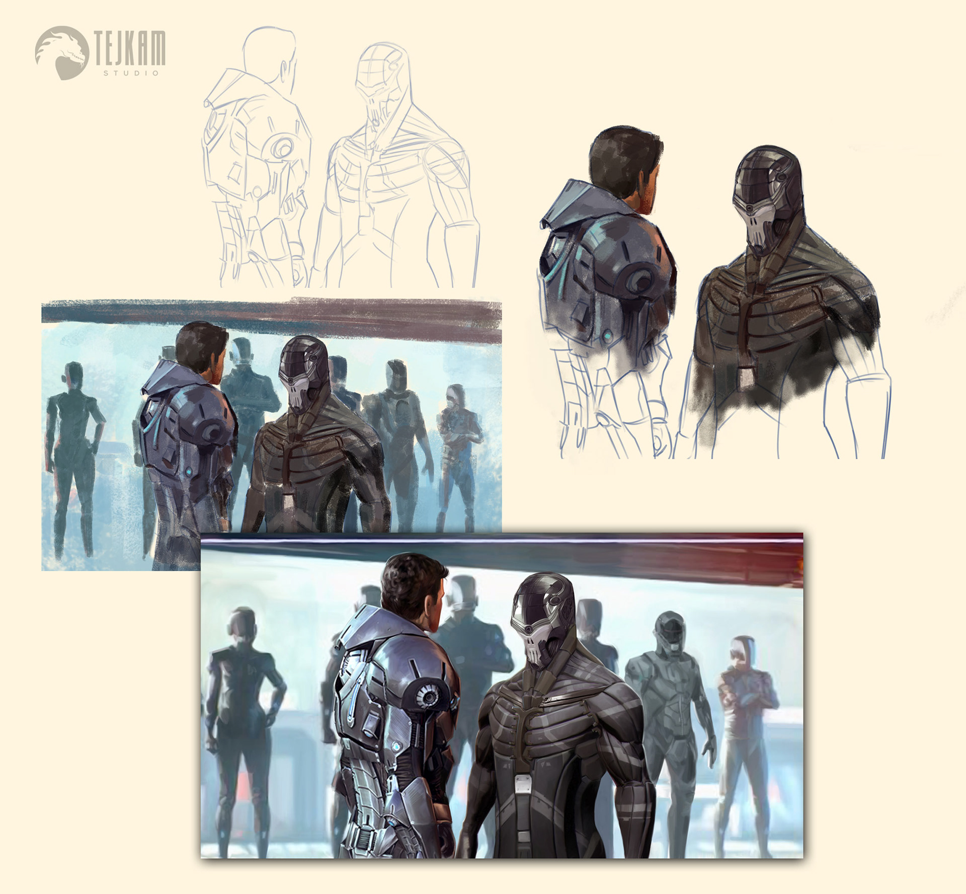 I crafted multiple concepts to meet Mr. Allen's vision.